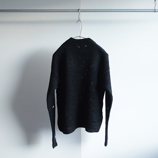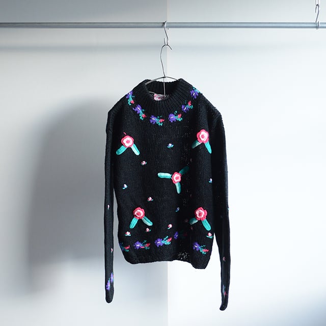 80s 90s 花パッチ 刺繍 ニット セーター 黒