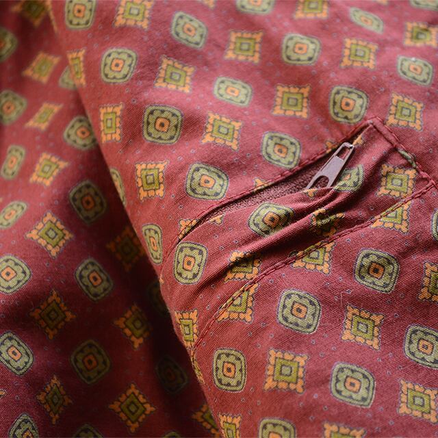 80s、90s頃のノーカラージャケットです。 広めの身幅、総柄の裏地、パイピング、胸のロゴなどが特徴。 生地はメルトンだと思います。 素材:45%WOOL 45%ACRYLIC 10%POLYAMID SIZE M(表記の割に大きめ) 着丈 63cm 身幅 63cm 肩幅 63cm 袖丈 55cm 多少の誤差はご了承ください。 CONDITION ある程度の着用感はありますが、目立った汚れやダメージはなく、概ね状態良好です。