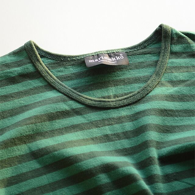 フィンランド製 マリメッコ marimekko ボーダー ロンT 長袖Tシャツ 緑 黒 L