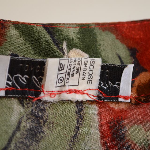 80s、90s頃の花柄ワンピースです。 ブリテン製のイギリス古着。 丈が短く、ウエストから下にボタンの付いていない前開きタイプですので、重ねて着るタイプです。 素材:100%VISCOSE SIZE 12(着用感レディースL相当) 着丈 73cm 身幅 50cm 肩幅 47cm 袖丈 55cm 多少の誤差はご了承ください。 CONDITION 着用感はありますが、目立った汚れやダメージはなく、概ね状態良好です。