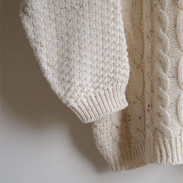 身幅が広めで袖短めのゆったりしたシルエット、ネップ、ロールネックなどが特徴です。