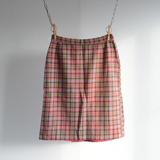 ヨーロッパ古着のチェックスカートです。 ジッパーはドイツ製のOPTI。 ボタンも古そうな感じです。 SIZE 表記なし(W27相当) ウエスト 70cm 脇丈 54cm 多少の誤差はご了承ください。 CONDITION 裏地にダメージがあり、着用感もありますが、古着慣れしている方でしたら問題なく着れる状態です。