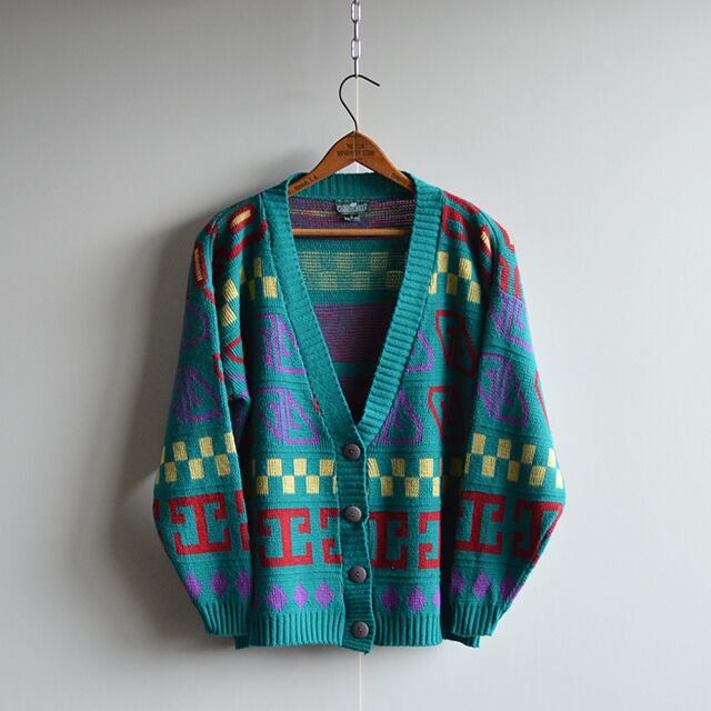 80s 総柄ニットカーディガン USA製
