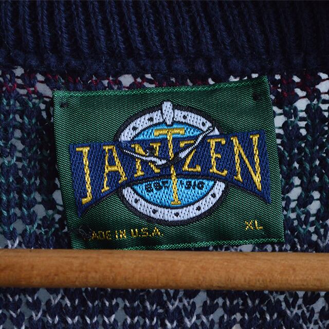 JANTZENのダイヤ柄コットンニットです。 80s頃のUSA製。 編みはあまめでサイズも大きめ、ゆったり着れる一着です。 SIZE XL 着丈 68cm 身幅 60cm 肩幅 62cm 袖丈 65cm 多少の誤差はご了承ください。 CONDITION 多少の着用感はありますが、目立った汚れやダメージはなく、概ね状態良好です。