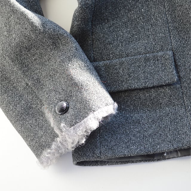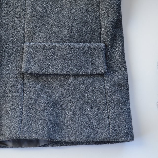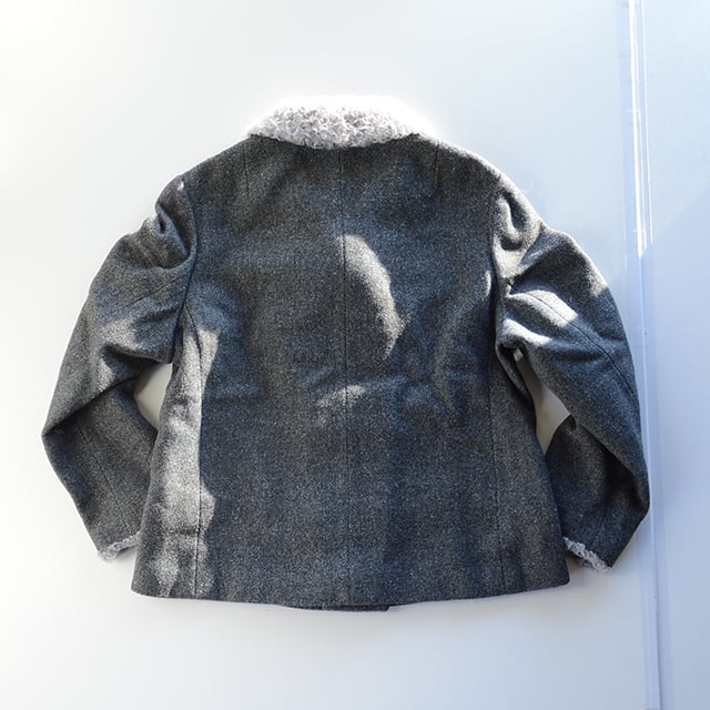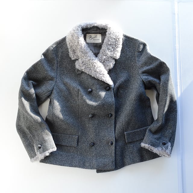スウェーデン製 ウール リアルファー ダブル ジャケット グレー ヨーロッパ古着