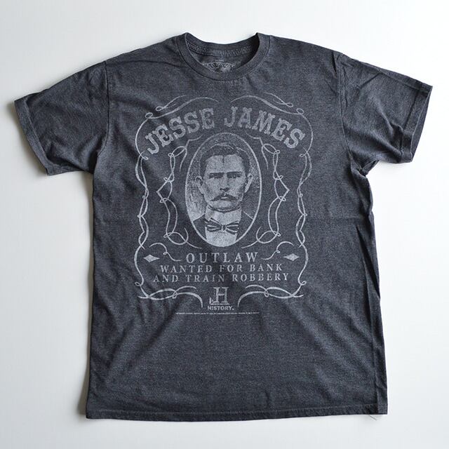 アメリカの西部開拓時代のガンマン、ジェシージェームズのTシャツです。 ヒストリーチャンネルのオフィシャルアイテムです。 SIZE LARGE 着丈 69cm 身幅 54cm 肩幅 46cm 袖丈 19cm 多少の誤差はご了承ください。 CONDITION 多少の着用感はありますが、目立った汚れやダメージはなく、概ね状態良好です。