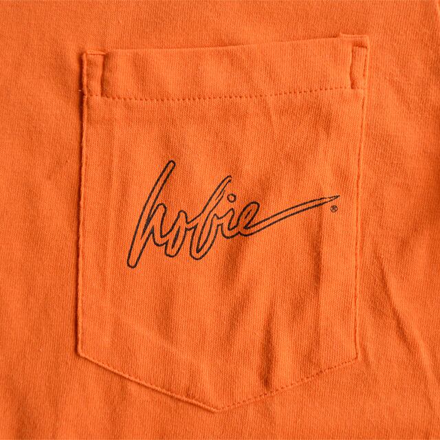 80sのHOBIEのTシャツです。 オレンジ色のボディやプリントが良い雰囲気。 使い勝手の良い胸ポケ付きというのも高ポイントです。 サーフスタイルの主役になる一枚です。 100%COTTON SIZE MEDIUM 着丈 74cm 身幅 48cm 肩幅 45cm 袖丈 20cm 多少の誤差はご了承ください。 CONDITION 多少の着用感があり、胸部にうっすらとした汚れもありますが、年代を考慮すると概ね状態良好です。
