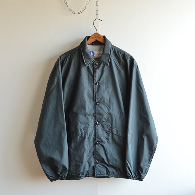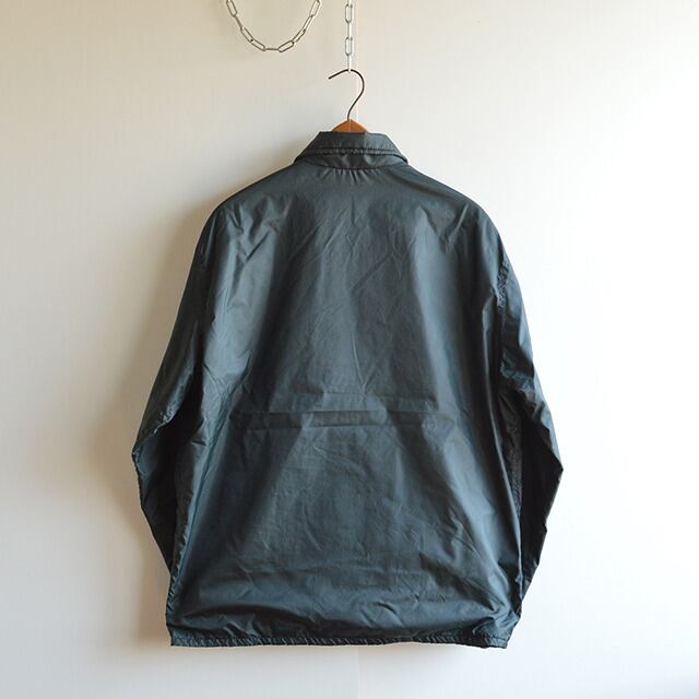 80sのコーチジャケットです。 裏地付きのUSA製。 色はほぼ黒な緑か紺、ポケットの形も特徴的です。 SHELL:100%NYLON/LINING:100%COTTON SIZE MEDIUM(表記の割に大きめ) 着丈 72cm 身幅 63cm 肩幅 51cm 袖丈 61cm 多少の誤差はご了承ください。 CONDITION 裏地に軽い汚れがある程度で、着用感は少なく、ナイロンにハリの残った良い状態です。