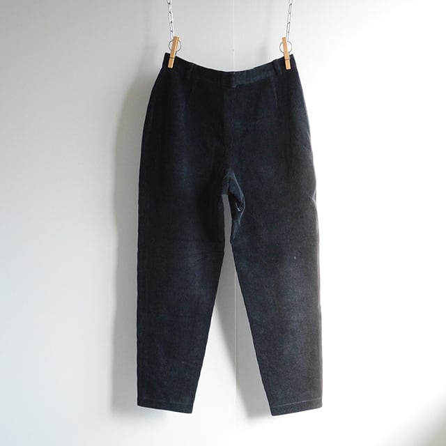 イタリア製の太畝コーデュロイパンツです。 股上深めでダーツ入り。 腰から太ももにかけてゆとりのある、きつめのテーパードシルエットが特徴です。 素材:65%COTTON 33%POLYESTER 2%ELASTAM SIZE 46(W28相当) ウエスト 72cm 脇丈 92cm 股上 27cm 股下 67cm 腿幅 31cm 裾幅 15cm 多少の誤差はご了承ください。 CONDITION 着用感はありますが、目立った汚れやダメージはなく、概ね状態良好です。