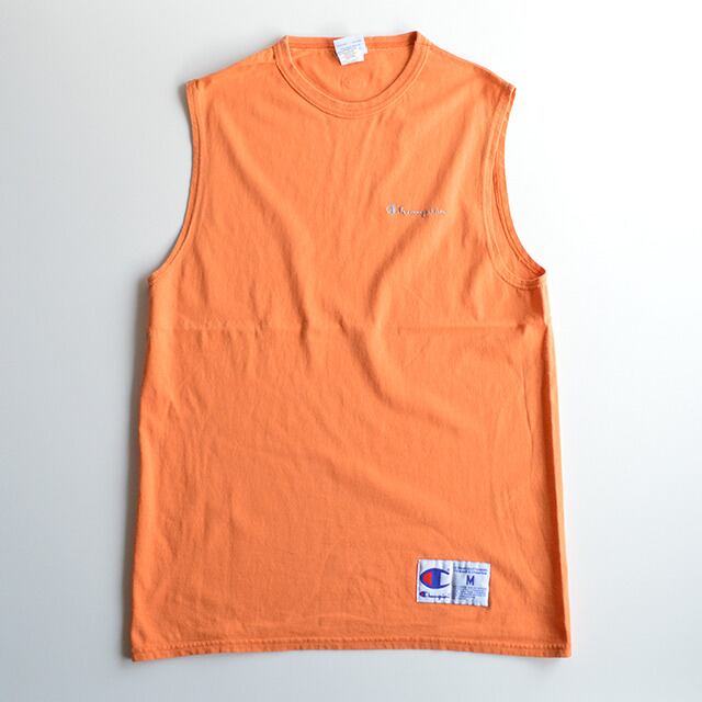 チャンピオンのノースリーブです。 USA企画のメキシコ製。 オールド感漂う裾タグ付き。 背中のワッペンや胸の刺繍もポイントです。 100%COTTON SIZE M 着丈 74cm 身幅 51cm 肩幅 42cm 多少の誤差はご了承ください。 CONDITION 着用感はありますが、目立った汚れやダメージはなく、概ね状態良好です。