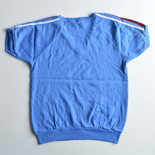 70s 80s Vネック ラグラン半袖スウェット USA製 青 デッドストック