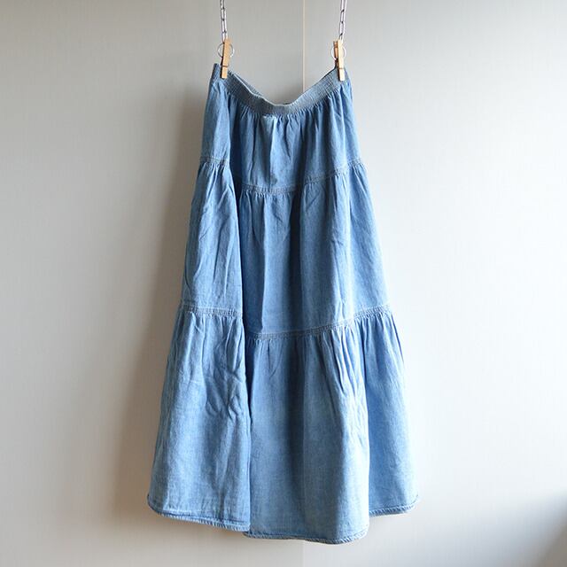 80sのデニムロングスカートです。 USA製。 品質表示にコットン100%とレーヨン100%の表記があり、素材の詳細は不明です。 100%RAYON/100%COTTON SIZE M(表記の割に大きめ) ウエスト《ゴム入り》 67cm 脇丈 89cm 多少の誤差はご了承ください。 CONDITION 全体的に薄く汚れており、細々した汚れもあります。 着用感もありますが、古着慣れしている方でしたら問題なく穿ける状態です。