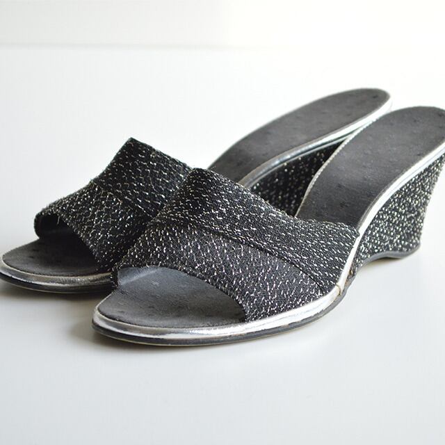 50s 60s ウェッジヒールサンダル 黒ラメ
