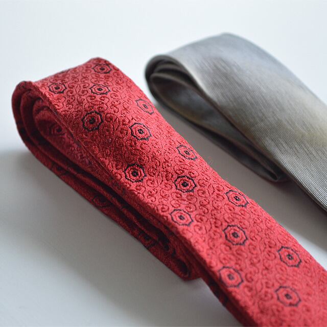 50sの小紋柄シルクナロータイです。 この年代では珍しい細いタイプ。 なかなかない組み合わせの柄、太さです。 対応できるスタイルの幅が広く、何かと重宝する一本になると思います。 Silk Warp SIZE 全長 131cm 幅 4.4cm 多少の誤差はご了承ください。 CONDITION 使用感は少なく、目立った汚れやダメージもない良い状態です。