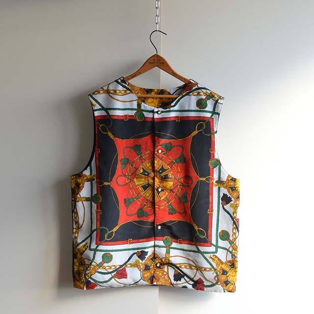 80sのチェーン、タッセル柄ベストです。 この手のアイテムでは珍しいUSA製です。 SIZE 表記なし(着用感メンズL相当) 着丈 64cm 身幅 57cm 肩幅 43cm 多少の誤差はご了承ください。 CONDITION 腰のベルトのボタンが一つ欠損しております。 腹部に目立たない小穴があります。 それら以外に気になる箇所はなく、なかなか良い状態です。