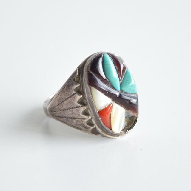 50sのインディアンシルバーリングです。 一部欠けてしまっておりますが、石の入ったタイプ。 裏側には刻印があります。 スタンダードなデザインで、長くお使いいただけると思います。 SIZE 24号 多少の誤差はご了承ください。 CONDITION 石が少し欠けております。 通常使用、経年による細かい傷などもありますが、問題なく身に付けれる状態です。