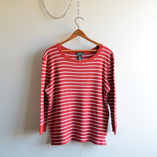LAUREN ラルフローレン 赤白ボーダー リブ カットソー XL