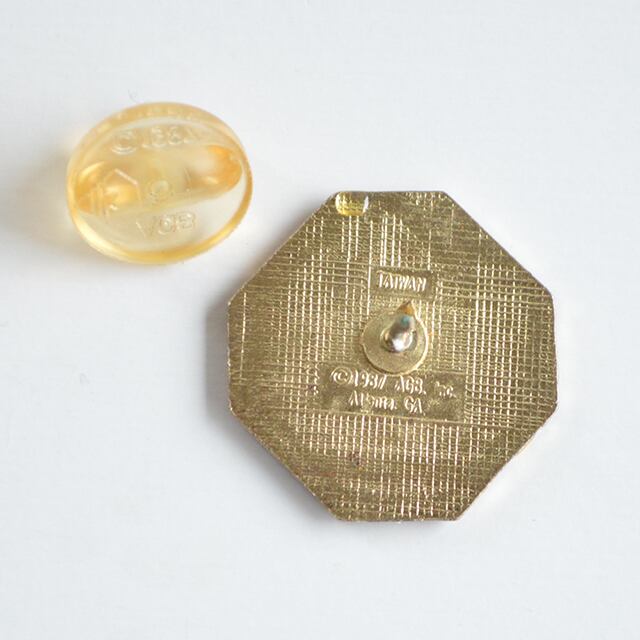 80sのピンバッジです。 看板モチーフにSTOP FOR BEERという面白いメッセージ。 軽めの合金に古いゴムのキャップも良い雰囲気です。 ライダースや鞄などのカスタムに。 SIZE 縦幅 2.3cm 横幅 2.3cm 多少の誤差はご了承ください。 CONDITION 保管時の傷などがある程度の、状態の良いデッドストックです。