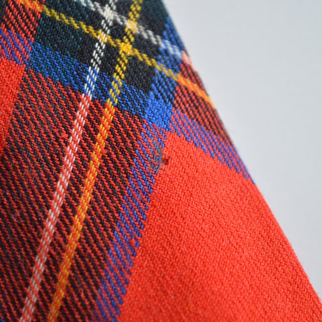 スコットランド製のタータンチェックネクタイです。 形は比較的細め、色は赤。 トラッドからパンクまで、幅広いコーディネートに使える一本です。 SIZE 全長 138cm 幅 6.2cm 多少の誤差はご了承ください。 CONDITION 表側、太いほうの先端から16cm辺りに小穴が一つあります。 それ以外に問題はなく、概ね状態良好です。