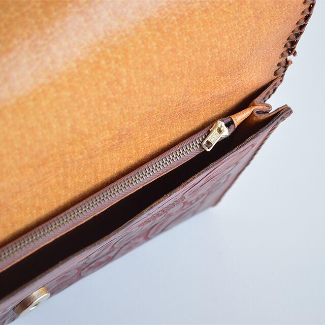 60s、70s頃のレザークラッチバッグです。 カービングは花柄。 状態の良いデッドストックというのもポイントです。 SIZE 縦幅 13.5cm 横幅 27cm マチ 3.7cm 多少の誤差はご了承ください。 CONDITION 目立った汚れやダメージのない、状態の良いデッドストックです。 革も良い状態を保っております。