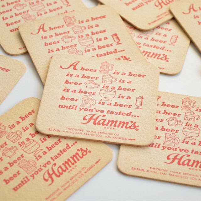 50sのHamm's BEERのコースター、デッドストック、10枚セットです。 おそらく当時のアドバタイジングアイテム。 古い厚紙、プリントもいい感じです。 SIZE 縦幅 8.5cm 横幅 8.4cm 多少の誤差はご了承ください。 CONDITION 経年感はありますが、目立つ汚れやダメージのない、状態の良いデッドストックです。