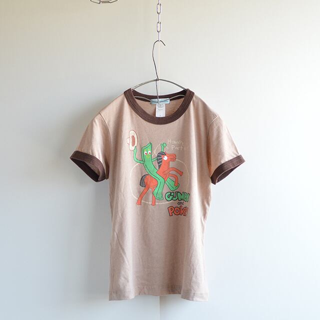 GUMBY & POKEYのTシャツです。 USA製。 着用感があるので判断しづらいですが、ビンテージ加工も施されていたと思います。 50%COTTON 50%POLYESTER SIZE M 着丈 51cm 身幅 40cm 肩幅 34cm 袖丈 13cm 多少の誤差はご了承ください。 CONDITION 着用感はありますが、目立った汚れやダメージはなく、問題なく着れる状態です。
