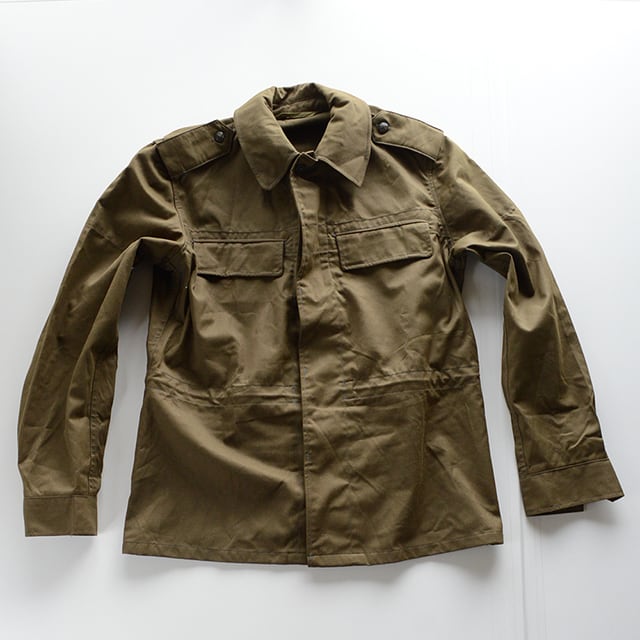 チェコ軍かスロバキア軍かチェコスロバキア軍のフィールドジャケットです。 生地は厚めのツイル。 腰のポケットやドローコードが特徴。 形はスタンダードなボックスシルエットです。 SIZE 表記なし(着用感メンズL相当) 着丈 76cm 身幅 60cm 肩幅 49cm 袖丈 67cm 多少の誤差はご了承ください。 CONDITION 着用感は少なく、目立った汚れやダメージもない良い状態です。