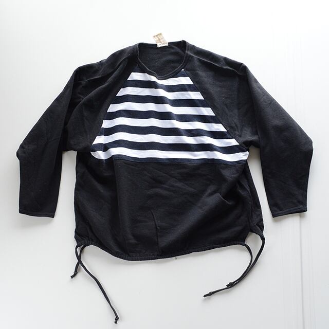 フィンランド製のボーダースウェットです。 80年代頃のヨーロッパ古着。 切り替え、裾の紐、身幅の広いシルエットが特徴。 生地は薄め、カットソーに近いです。 素材:100%Puuvilla Bomull Cotton Baumwolle SIZE L 着丈 54cm 身幅 59cm 裄丈 72cm 多少の誤差はご了承ください。 CONDITION 着用感はありますが、目立った汚れやダメージはなく、年代を考慮すると概ね状態良好です。