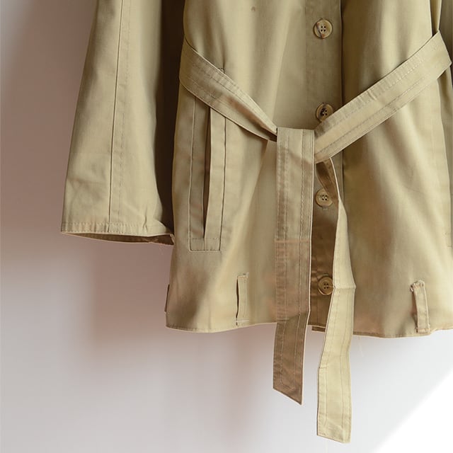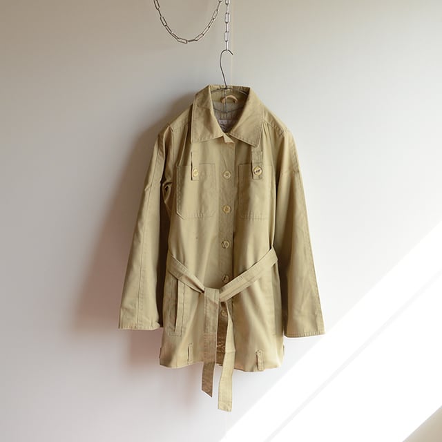 サファリジャケットのようなデザインで、裾にはライダースのようなベルトループ付き。