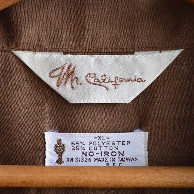 60s、70s頃のボックスオープンシャツです。 胸の刺繍とハンドステッチがポイント。 スタンダードな一着です。 素材:65%POLYESTER 35%COTTON SIZE XL 着丈 75cm 身幅 69cm 肩幅 53cm 袖丈 26cm 多少の誤差はご了承ください。 CONDITION フロントの一番下のボタンが交換されております。 多少の着用感はありますが、目立った汚れやダメージはなく、概ね状態良好です。
