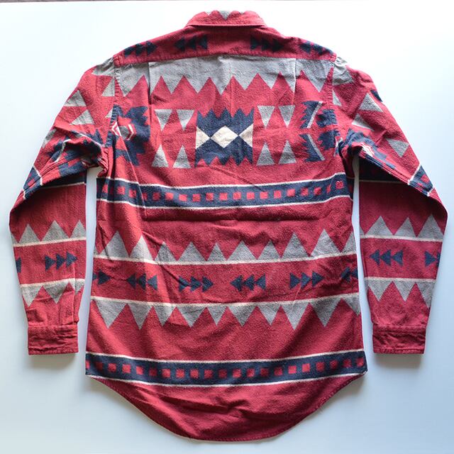 ラルフローレンのネイティブ柄ネルシャツです。 90年代のUSA製。 生地は比較的かため、形はスタンダードです。 素材:100%COTTON SIZE M 着丈 83cm 身幅 57cm 肩幅 46cm 袖丈 63cm 多少の誤差はご了承ください。 CONDITION タグに色移りがあります。 着用感はありますが、目立った汚れやダメージはなく、概ね状態良好です。