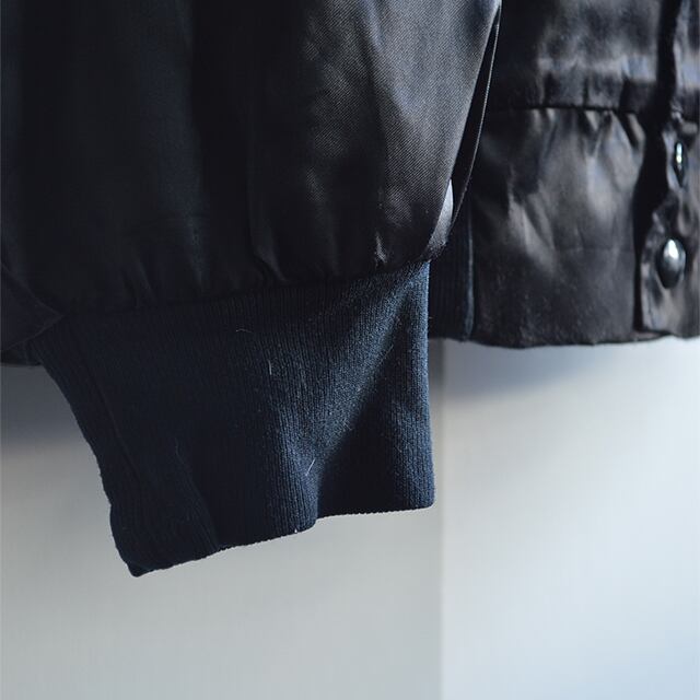 背中にロデオ、カウボーイの刺繍が大きく入った黒サテンジャケットです。