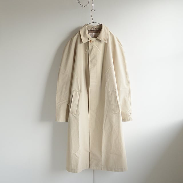 80sのステンカラーコートです。 フィンランド製のヨーロッパ古着。 裏地がないので比較的軽いです。 素材:73%Polyester 27%Cotton SIZE C 52(着用感レディースXL相当) 着丈 111cm 身幅 64cm 裄丈 87cm 多少の誤差はご了承ください。 CONDITION 右ポケット内の上部がほつれており、3cmほどの穴が開いております。 着用感は少なく、年代を考慮すると概ね状態良好です。
