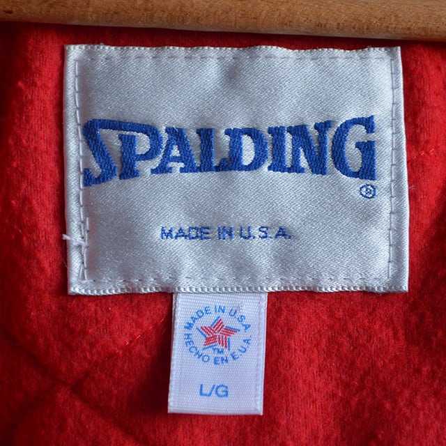 80s、90s頃のスポルディングのナイロンスタジャンです。 ジップアップパーカをインナーに着ているように見える、少し変わったデザインが特徴。 中綿入りでジッパーはYKK USA、MADE IN USAです。 SIZE L/G 着丈 66cm 身幅 65cm 裄丈 88cm 多少の誤差はご了承ください。 CONDITION 着用感はありますが、目立った汚れやダメージはなく、概ね状態良好です。