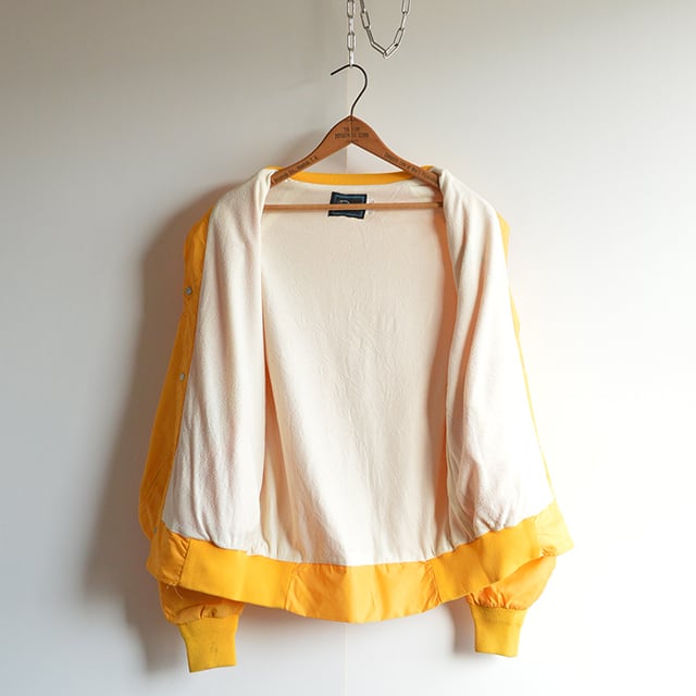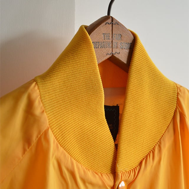 ホッケースタイルのスヌーピーがプリントされたナイロンジャケットです。 ボディは70s、80s頃のARTEX。 フランネルの裏地が付いたタイプ。 発色の良いイエローもポイント。 SIZE MEDIUM 着丈 63cm 身幅 60cm 裄丈 86cm 多少の誤差はご了承ください。 CONDITION 所々に黒い汚れがあります。 左袖のリブに小穴があります。 着用感はありますが、古着慣れしている方でしたら問題なく着れる状態です。