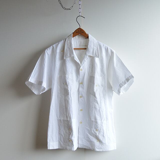70s、80s頃のガヤベラシャツです。 希少な白色。 刺繍入り、耳付きです。 SIZE 表記なし(着用感メンズM相当) 着丈 69cm 身幅 61cm 肩幅 45cm 袖丈 23cm 多少の誤差はご了承ください。 CONDITION 首周りが薄く汚れております。 ある程度の着用感はありますが、年代を考慮すると概ね状態良好です。