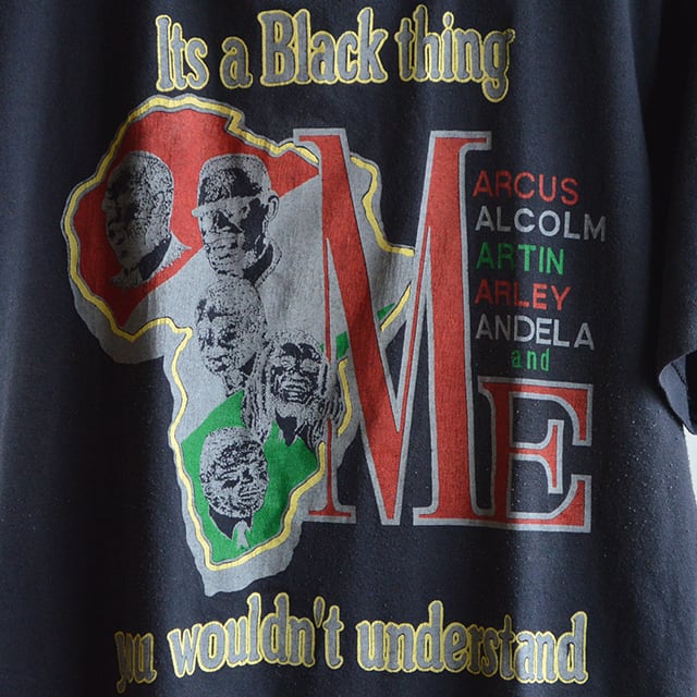 マルコムX、キング牧師、ボブ・マーリー、ネルソン・マンデラ、マーカス・ガーベイという、20世紀を代表する黒人の著名人がプリントされたTシャツです。